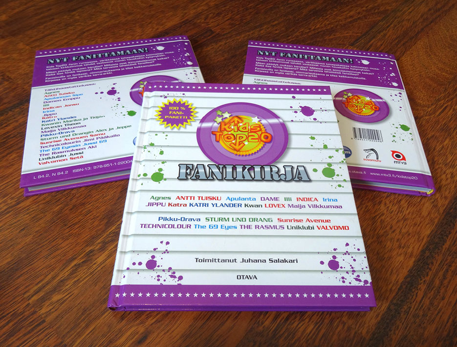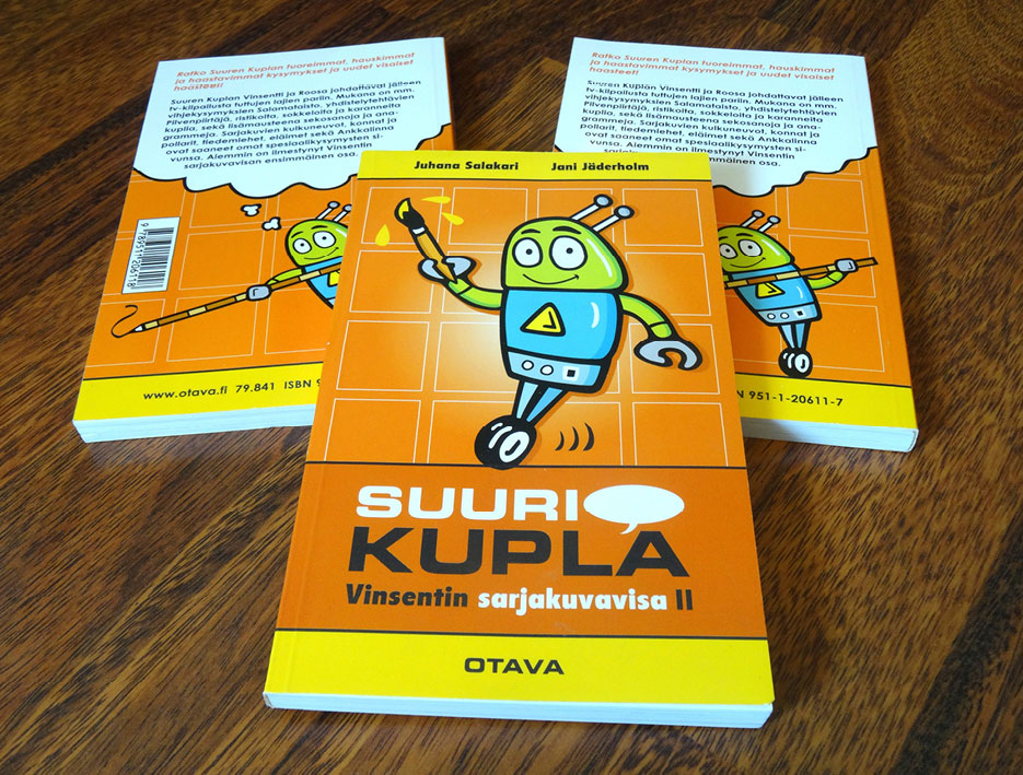 Reuhurinne Käsikirja (2015), kirjoittanut: Juhana Salakari Reuhurinne Maalitykit (2014), kirjoittanut: Juhana Salakari ja Anita Salakari Hengitän – äänessä Antti Tuisku (2010), kirjoittanut: Juhana Salakari Kids Top20 Fanikirja (2007), toimittanut: Juhana Salakari Kids Top20 Tähtikirja (2006), toimittanut: Juhana Salakari Suuri Kupla II – Vinsentin sarjakuvavisa (2006), kirjoittanut: Juhana Salakari ja Jani Jäderholm Suuri Kupla – Vinsentin sarjakuvavisa (2004), kirjoittanut: Juhana Salakari ja Jani Jäderholm Ravintolaillan perussanasto (2004), kirjoittanut: Juhana Salakari Kids Top20 Ystäväkirja (2006), toimittanut: Juhana Salakari